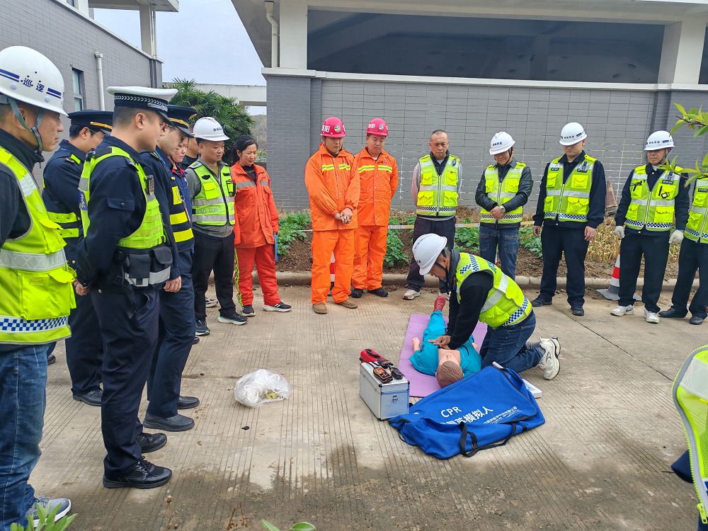此次演練場景模擬S1成萬高速綿陽繞城段南服務區(qū)進行地下污水井清淤作業(yè)過程中,因有害氣體超標作業(yè)人員出現(xiàn)頭暈、昏迷險情?,F(xiàn)場發(fā)現(xiàn)險情后,值班人員第一時間上報,演練總指揮迅速啟動有限空間應急預案,立即下達警戒、檢測、通風、救援、醫(yī)療救護等指令。各應急小組快速響應、分工協(xié)作:警戒保衛(wèi)組迅速劃定危險區(qū)域,設置警示標識,疏散無關人員與車輛;環(huán)境監(jiān)測組使用氣體檢測儀對有限空間內氧氣、有毒有害氣體濃度進行實時監(jiān)測;搶險救援組穿戴呼吸器、安全繩、應急箱等專業(yè)裝備,在持續(xù)強制通風后規(guī)范實施救援,快速將“被困人員”轉移至安全開闊地帶;醫(yī)療救護組立即開展心肺復蘇、人工呼吸等現(xiàn)場急救,并同步對接120急救中心,做好轉運準備。整個演練過程緊張有序、環(huán)節(jié)緊湊,各小組配合默契、處置規(guī)范,嚴格按照應急預案完成全部救援流程,達到了預期演練效果。